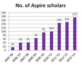 Most rural parents educate their children until Class 8 without much trouble. It is beyond this stage that many students tend to drop out either due to financial constraints in the family or disinterest in pursuing studies, or a combination of both factors. Aspire Foundation’s scholarship program handpicks these students who have completed Class 8, based on their economic backwardness and consistency in academics. The program aims to improveeducation quality and equips students to take informed decisions about their higher education and career. For 4 years until they complete Class 12, Aspire Foundation scholars are exposed to a comprehensive package of inputs which helps build their confidence and skills. Most Aspire scholars go on to complete under-graduation and some even post-graduation.