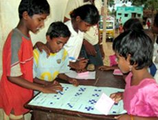 Primary math pilot program – Activities were developed to improve basic arithmetic skills of children in Std. 3-5 in 6 schools. The focus was on number recognition, place value, addition and subtraction using concrete blocks & other material. In addition, melas were conducted to create excitement to learn math. Activities in the melas included weight and height measurement, estimation, visual reasoning and balancing simple equations. Besides, some stalls displayed materials to explain concepts such as number line, arithmetic symbols and reading time on a clock, as well currency. This action research program was done in collaboration with AID INDIA, Chennai.