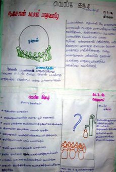 - Monthly newspaper - An innovative idea by our VLC students was the production of a monthly newspaper. This newspaper is brought out entirely by the students with help from their VLC teacher. It covers a wide array of topics containing sections such as local news, festivals, general knowledge, proverbs, poems, obituary, children’s corner, prices of local produce, weather, etc. It is creatively designed and illustrated to resemble a newspaper and armed with local information.