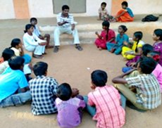 Every VLC has a Children’s Committee comprising all children who regularly attend the VLC. This Committee consists of smaller groups, each group having separate responsibilities in environment protection, health and education. The Committeereviews the work of each group every month and provides help whenever required. The Committee has a President, Secretary & Treasurer, electedthrough the ballot system. The Committeecollects subscription from its members and uses the same for purposes it deems fit. Some instances where this subscription has been used are: (a) to buy a light bulb to replace the broken bulb at the VLC, (b) to buy brooms and dustpans to use in village street cleaning work, (c) to pay the bus fare of a few members who visited another VLC